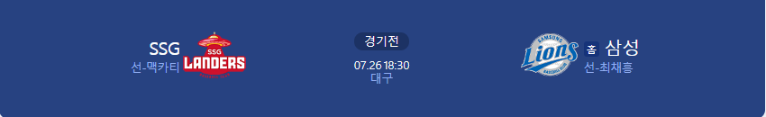 7월 26일 KBO 경기분석 SSG 랜더스 vs. 삼성 라이온즈 Preview 본문