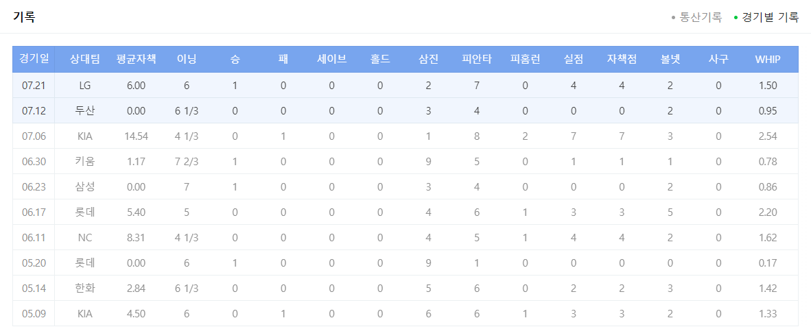 최하위에서 벗어나기 위한 삼성 라이온즈의 선택은 언더스로우 김대우 선수입니다. 올 시즌 33이닝 투구하며 0승 1패 평균 자책점 3.82를 기록하고 있습니다. 선발 등판보다는 구원 등판이 많았던 김대우 선수이기 때문에 선발 매치업으로만 경기를 분석하기에는 다소 무리가 있는 경기로 보여집니다.