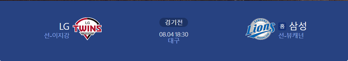8월 4일 KBO LG 트윈스 vs. 삼성 라이온즈 Preview 본문